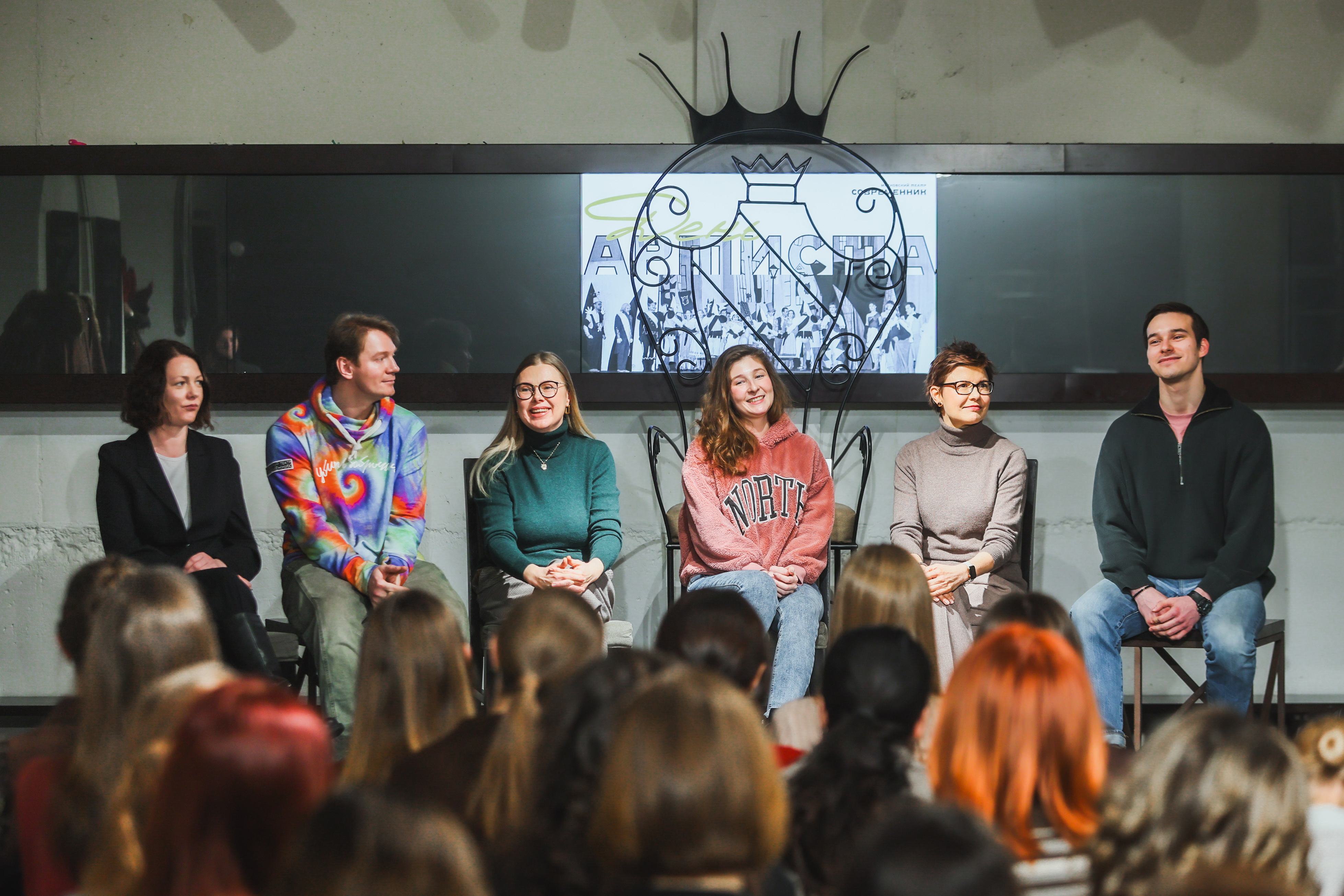 Поздравить артистов «Современника» приехали участники Содружества школьных театров Москвы и Московского центра воспитательных практик. Учащиеся Театра-студии «Алые паруса» школы № 1409 подготовили для них приятный подарок — ребята показали два небольших фрагмента из спектаклей «Всегда в продаже» и «Голый король». В ответ директор нашего театра Марина Александровна Евса вручила юным артистам и их наставникам благодарственные письма. В День Артиста также состоялась творческая встреча с актёрами «Современника»: Ульяной Лаптевой, Николаем Клямчуком, Еленой Плаксиной, Анастасией Кутявиной и Дарьей Фроловой.
