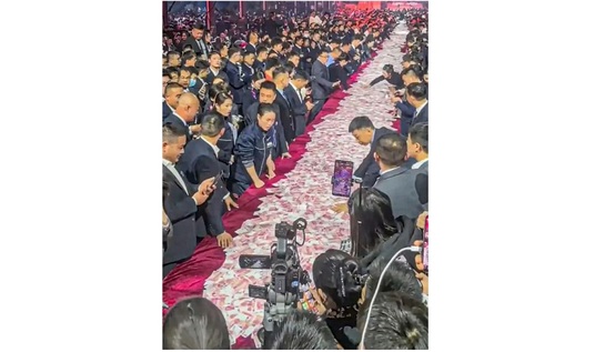 В сети распространились видеозаписи, на которых видно, как сотрудники собирают купюры, разложенные на длинных столах, и уносят целые пачки наличных. Председатель компании Цуй Пэйцзюнь во время праздника также объявил о дополнительных премиях и подарках.