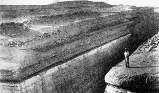 Первые описания этого таинственного монумента сделал еще в XIX веке германский египтолог Карл Лепсиус. Более серьезно в Завиет-эль-Эриан поработал в начале XX века известный итальянский археолог Алессандро Барсанти: он провел раскопки и подробно описал это удивительное творение. У него тоже, как и у всех его коллег, возник вопрос, какими же технологиями и инструментами пользовались те, кто создал Т-образный комплекс. Один из самых внушительных гранитных блоков, из которых был составлен пол, по вычислениям Барсанти, весил 30 тонн.