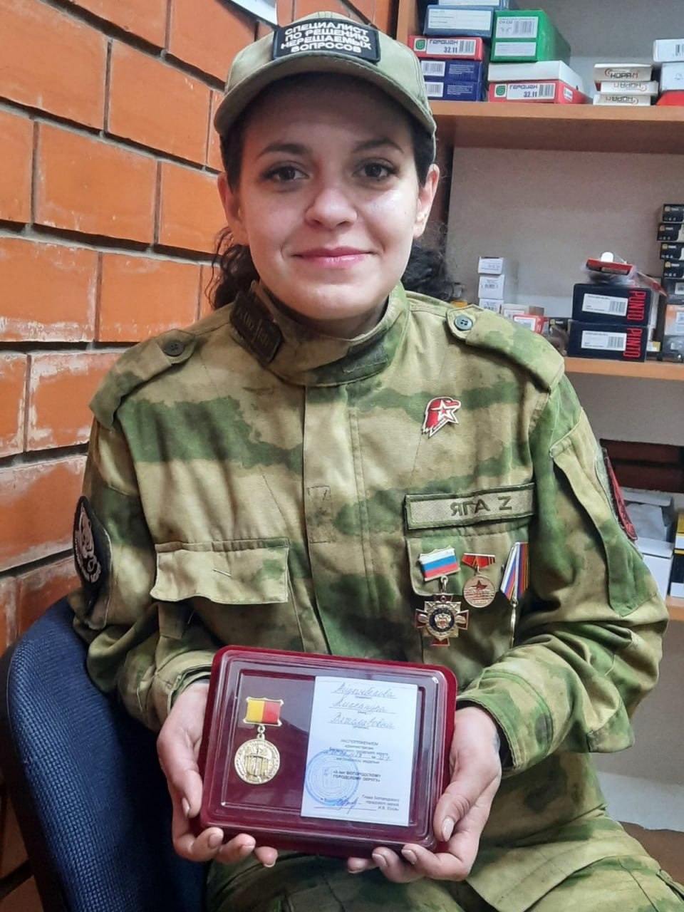 Показывает награды, благодарственные письма от бойцов, которых называет боевыми братьями. Информация о ней висит на националистическом украинском сайте «Миротворец». За ее голову там сулят большие деньги.