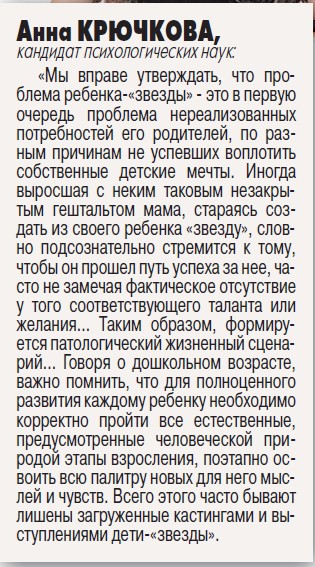 Информационное пространство фонтанирует обилием рекламы детских модельных агентств и прочих «фабрик звезд», обещающих тщеславным родителям сотворить пылающих славой звезд вселенского масштаба из их милых карапузов и принцессок.