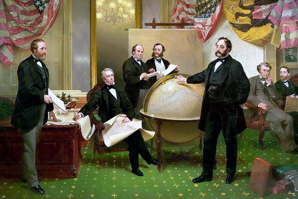 Подписание договора о продаже Аляски 30 марта 1867 г. Художник Э. Лойц.1868 г.
